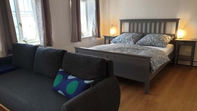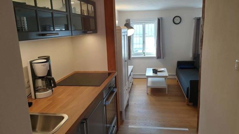 Die Wohnung verfügt über ein Wohnzimmer mit einem Flachbild-TV sowie eine Küchenzeile, die mit einem Kühlschrank, Ofen, Herdplatte, Kaffeemaschine und Wasserkocher ausgestattet ist. Die Unterkunft bietet kostenloses WLAN und einen Privatparkplatz, der vor Ort zur Verfügung steht.