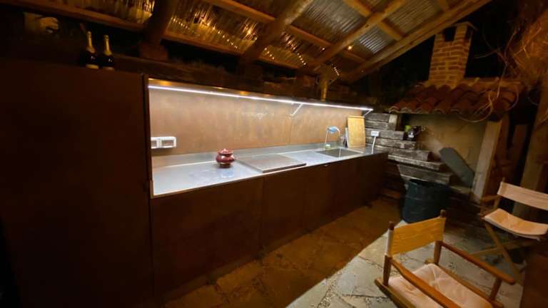 Die Villa bietet vier Schlafzimmer, ein voll ausgestattetes Wohnzimmer, eine Küche mit Kühlschrank und Kaffeemaschine sowie drei Badezimmer mit Bidet und Dusche.