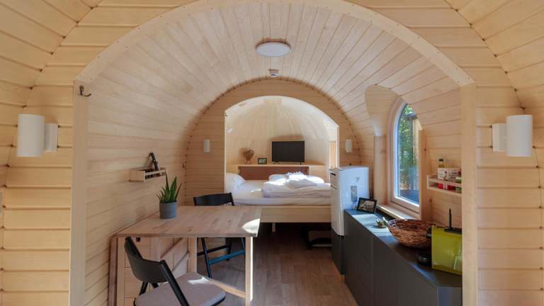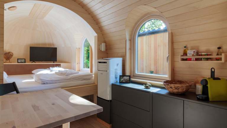 Das Ferienhaus beinhaltet ein Schlafzimmer und ein Badezimmer. Zur Ausstattung gehören Bettwäsche, Handtücher, ein Flachbild-TV, ein Essbereich und eine voll ausgestattete Küchenzeile. Eine Terrasse mit Gartenblick ist ebenfalls vorhanden.