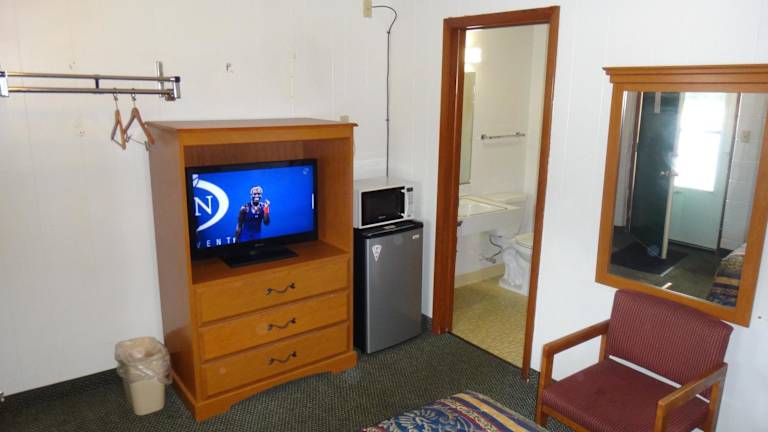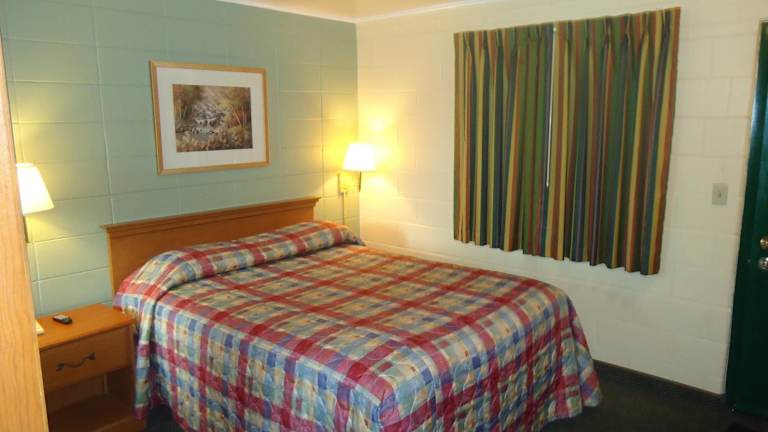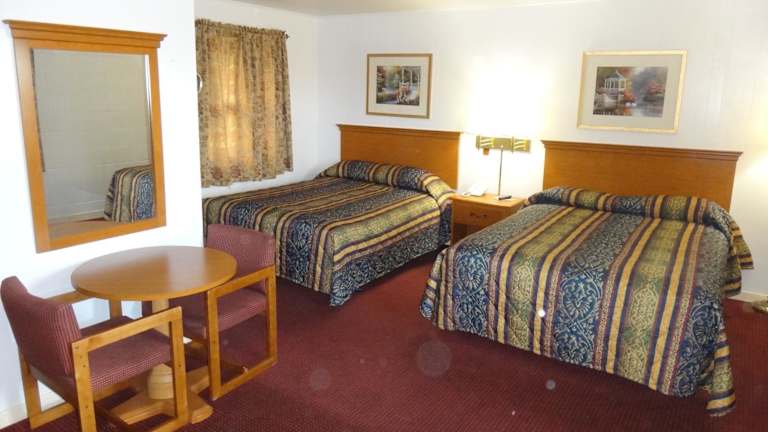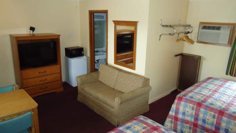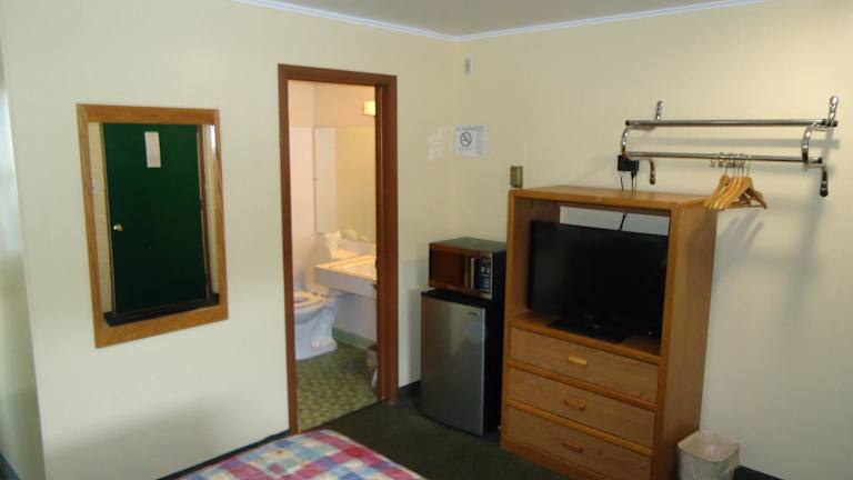 Die Zimmer im Tower Motel sind komfortabel und gemütlich eingerichtet. Jedes Zimmer verfügt über Holzmöbel, die eine warme und einladende Atmosphäre schaffen. Zur Ausstattung gehören Kabel-TV, eine Mikrowelle und ein kleiner Kühlschrank, so dass Gäste ihre eigenen Snacks und Getränke mitbringen können. Ein Schreibtisch und ein Telefon sind ebenfalls vorhanden, um den Gästen die Möglichkeit zu geben, bequem zu arbeiten oder mit Familie und Freunden in Kontakt zu bleiben.