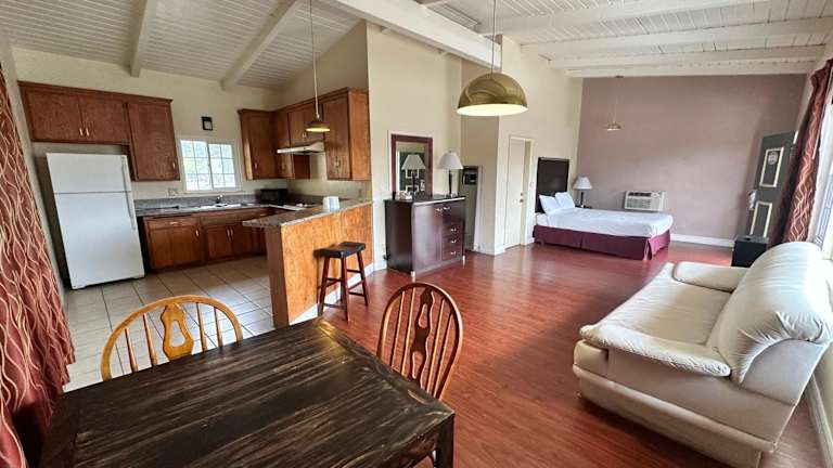 Die Zimmer im Town and Country Inn bieten Ihnen Komfort und Bequemlichkeit während Ihres Aufenthalts. Jedes Zimmer verfügt über eine Mikrowelle und einen kleinen Kühlschrank, damit Sie Ihre eigenen Mahlzeiten zubereiten und aufbewahren können. Das Zimmer ist außerdem mit einem Kabel-TV mit HBO ausgestattet, damit Sie Ihre Lieblingssendungen und Filme genießen können. Eine Klimaanlage sorgt für angenehme Temperaturen, und ein Tisch mit Stühlen bietet Ihnen einen bequemen Arbeits- oder Essbereich.
