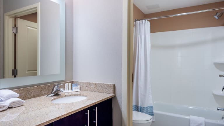 Die 116 Nichtraucherzimmer des Hotels sind auf 5 Etagen verteilt und mit modernen Annehmlichkeiten ausgestattet. Jede Suite verfügt über eine voll ausgestattete Küche, in der Sie Ihre eigenen Mahlzeiten zubereiten können. Ein 32-Zoll-Flachbild-TV und kostenloses WLAN sorgen für Unterhaltung und Verbindungsmöglichkeiten. Das Hotel bietet auch einen Innenpool und einen Whirlpool sowie ein 24-Stunden-Fitnesscenter und einen 24-Stunden-Laden für Ihren Komfort.