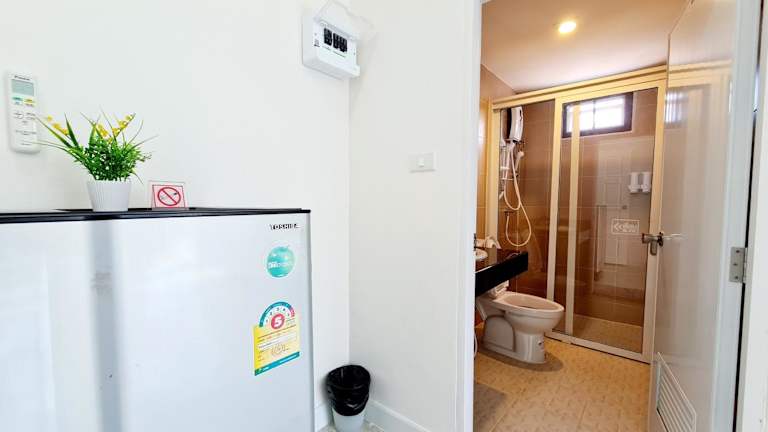 Die Wohneinheiten in TP House@Naka sind mit eigenem Badezimmer, Dusche, Klimaanlage, TV und Kühlschrank ausgestattet.