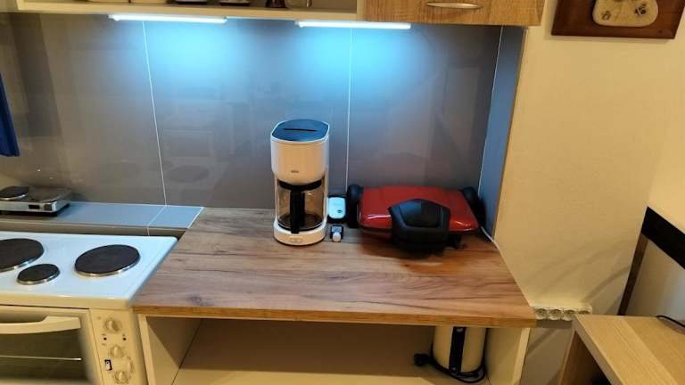 Die Ferienwohnung verfügt über ein Schlafzimmer und eine voll ausgestattete Küche. Sie bietet direkten Zugang zu einer Terrasse mit Gartenblick.