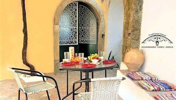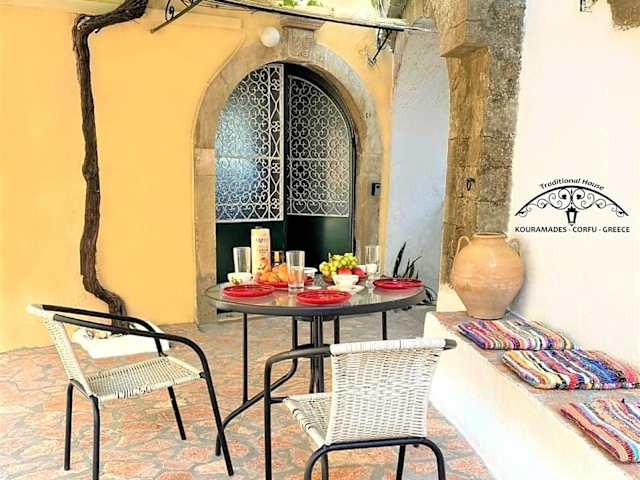 Das Traditional House in Corfu, Kouramádes Vlg ist eine ideale Unterkunft für Reisende, die eine ruhige und authentische Atmosphäre suchen. Das klimatisierte Apartment bietet Ihnen Komfort und eine voll ausgestattete Küche. Genießen Sie den Blick auf die Berge von der Terrasse und erkunden Sie die Umgebung bei Wanderungen. Das kostenfreie WLAN und die Nähe zu Sehenswürdigkeiten wie dem Palast Achilleion und Pontikonisi machen diesen Aufenthalt noch angenehmer.