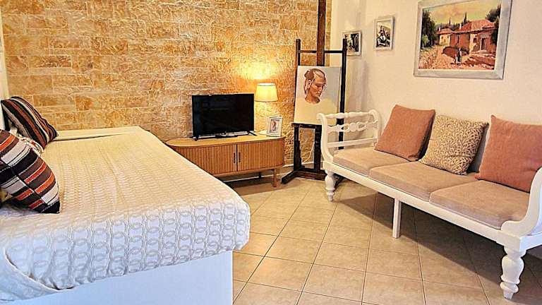 Das klimatisierte Apartment im Traditional House in Corfu, Kouramádes Vlg besteht aus einem Schlafzimmer, einem gemütlichen Wohnzimmer und einer voll ausgestatteten Küche mit Kühlschrank und Kaffeemaschine. Das Badezimmer verfügt über eine Dusche und kostenlose Pflegeprodukte. Handtücher und Bettwäsche werden gestellt, um Ihnen einen angenehmen Aufenthalt zu ermöglichen. Das kostenfreie WLAN sorgt dafür, dass Sie immer mit der Welt verbunden bleiben.
