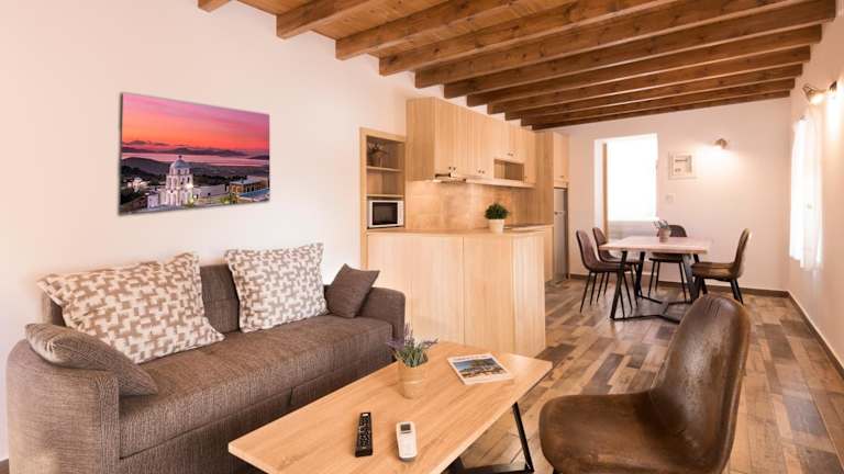 In der Traditional Villa Stergia steht eine gut ausgestattete Küche zur Verfügung, in der die Gäste ihre eigenen Mahlzeiten zubereiten können. Alternativ können sie auch in einem der Restaurants in der Nähe speisen und die lokale Küche genießen.