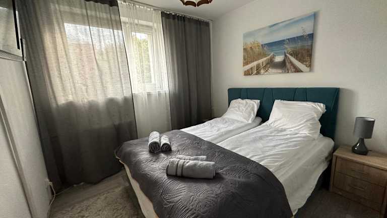 Die Ferienwohnung verfügt über ein Schlafzimmer und ein Wohnzimmer, das mit einem Flachbild-TV ausgestattet ist. Zusätzlich gibt es eine voll ausgestattete Küche.