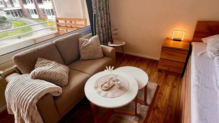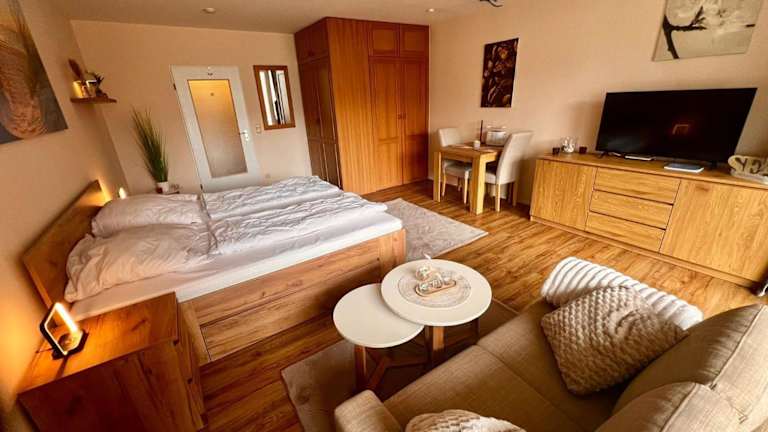 Das Apartment verfügt über 1 Schlafzimmer, ein Wohnzimmer mit Flachbild-TV, eine gut ausgestattete Küche mit Kühlschrank und Mikrowelle sowie 1 Badezimmer mit Dusche. Ein Balkon mit Gartenblick ist ebenfalls vorhanden. Handtücher und Bettwäsche können gegen Aufpreis bereitgestellt werden.