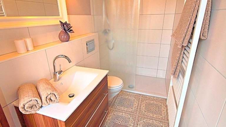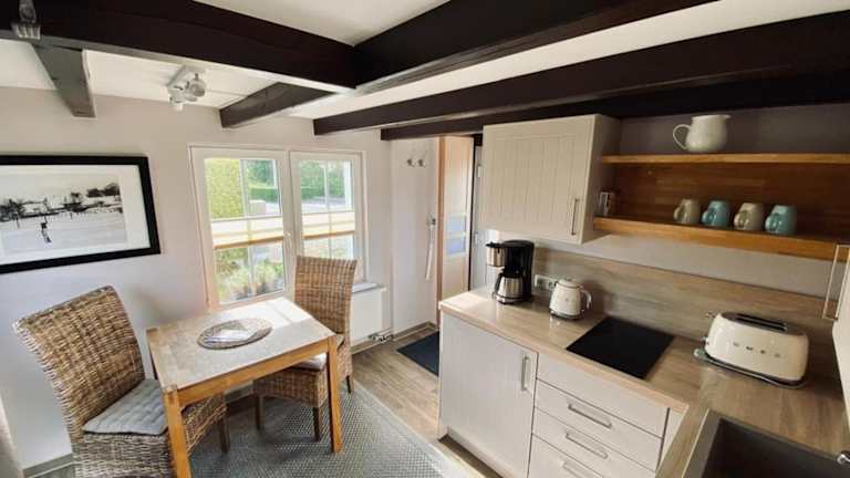 Das Ferienhaus umfasst ein separates Schlafzimmer sowie eine voll ausgestattete Küchenzeile. Zur Ausstattung gehören ein Kühlschrank und eine Mikrowelle. Ein Badezimmer ist ebenfalls vorhanden.