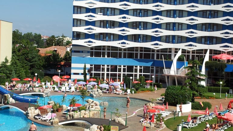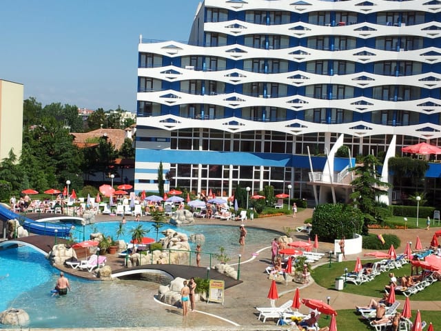 Das Hotel Trakia in Sonnenstrand ist ein ideales Hotel für Strandurlauber, nur wenige Meter vom Sandstrand entfernt. Das Hotel bietet verschiedene Annehmlichkeiten wie einen Außenpool mit Wasserrutsche, einen Whirlpool im Wellnessbereich und einen Spielplatz für Kinder. Die Gäste können zwischen verschiedenen gastronomischen Einrichtungen wählen, darunter ein Restaurant, eine Bar und eine Lobbybar. Das All-Inclusive-Angebot umfasst ein leckeres Buffet für Frühstück, Mittag- und Abendessen sowie Snacks. Das Hotel verfügt über komfortable Zimmer mit Klimaanlage und Balkon oder Terrasse.