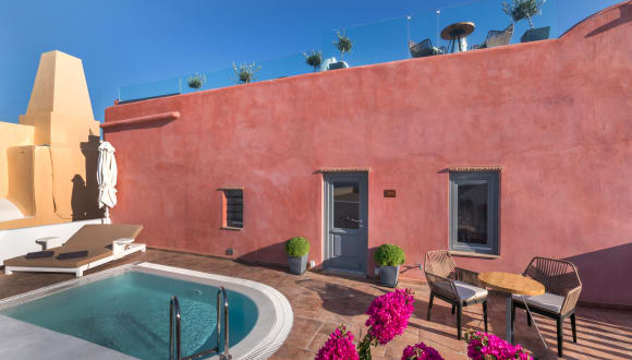 Das Tramonto Secret Villas in Oia bietet elegante Zimmer und Suiten in zentraler Lage, nur wenige Gehminuten von der Caldera und dem Schloss entfernt. Die Unterkünfte bieten einen atemberaubenden Blick auf den berühmten Sonnenuntergang von Oia und sind mit modernen Annehmlichkeiten ausgestattet. Genießen Sie Ihren Aufenthalt in diesem charmanten Hotel und starten Sie jeden Tag mit einem köstlichen kontinentalen Frühstück.