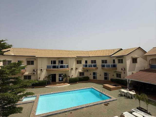 Das TRANQUIL RESORT HOTEL in Brusubi bietet eine ideale Unterkunft für einen erholsamen Urlaub in Gambia. Mit einem Außenpool, kostenfreien Privatparkplätzen und verschiedenen Annehmlichkeiten können Gäste hier ihre Zeit in vollen Zügen genießen. Das Hotelrestaurant verwöhnt die Gäste mit afrikanischen und katalanischen Gerichten, während die Bar erfrischende Cocktails serviert. Die Zimmer sind komfortabel eingerichtet und verfügen über ein eigenes Bad und eine Klimaanlage. Einige Zimmer bieten zudem einen Balkon. Das freundliche Personal spricht mehrere Sprachen und steht den Gästen rund um die Uhr zur Verfügung. Die Lage des Hotels ermöglicht es den Gästen, die umliegenden Naturschutzgebiete und den nahegelegenen Strand Bijilo zu erkunden. Der internationale Flughafen Banjul ist nur eine kurze Autofahrt entfernt.