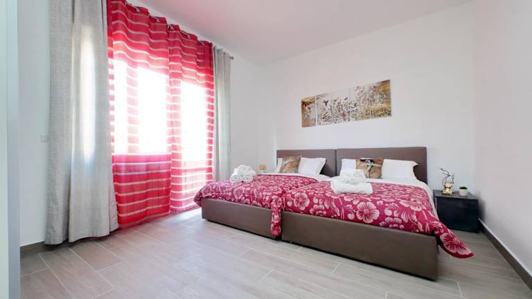 Die Ferienwohnung ist klimatisiert und besteht aus zwei Schlafzimmern, einem Wohnzimmer und einer voll ausgestatteten Küchenzeile. Diese Küche ist mit einem Kühlschrank und einer Kaffeemaschine ausgestattet. Zudem gibt es ein Badezimmer, das mit einem Bidet und einer Dusche ausgestattet ist. Handtücher und Bettwäsche werden bereitgestellt.