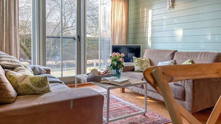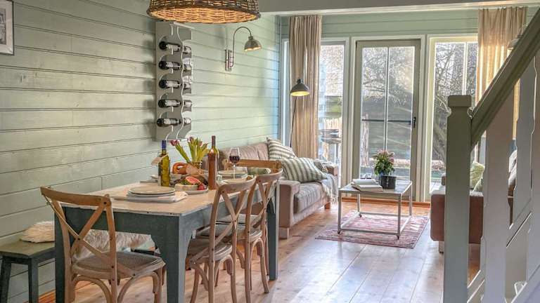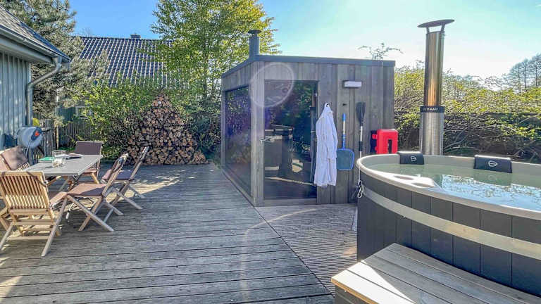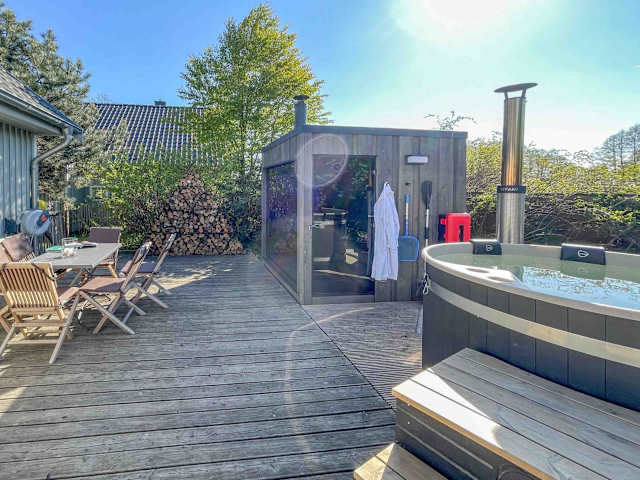 Das Ferienhaus im traumHaff Bootsmanns Domizil Kamin, privates NORDICSPA, Boot in Rieth am See bietet komfortable Unterkünfte mit kostenfreiem WLAN. Das Haus verfügt über eine voll ausgestattete Küche mit Kühlschrank, Geschirrspüler, Backofen, Kochfeld, Toaster, Kaffeemaschine und Wasserkocher. Das private Badezimmer ist mit einer Dusche und kostenlosen Pflegeprodukten ausgestattet. Es gibt auch einen gemütlichen Sitzbereich mit einem Flachbild-TV und eine Terrasse mit Gartenblick.