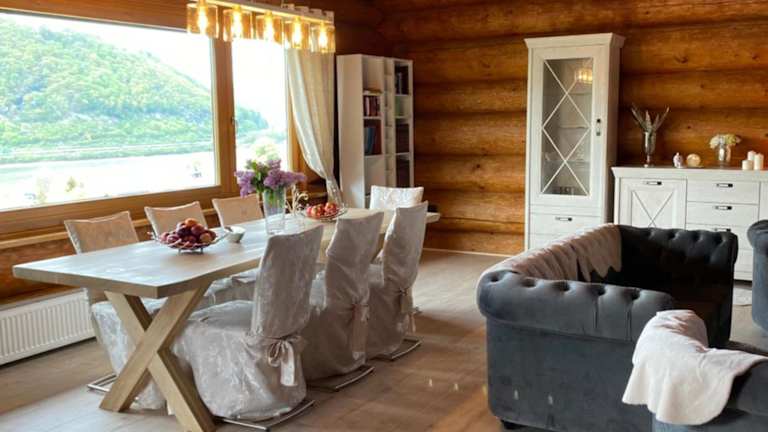 Die Unterkunft besteht aus einem Ferienhaus, das mit einem Balkon und Bergblick ausgestattet ist. Es umfasst zwei Schlafzimmer, ein Wohnzimmer und eine voll ausgestattete Küche. Das Blockhaus bietet zudem eine kinderfreundliche Umgebung mit einem Spielplatz. Die Immobilie wird von einem privaten Gastgeber geführt und ermöglicht das Parken in der eigenen Anlage.