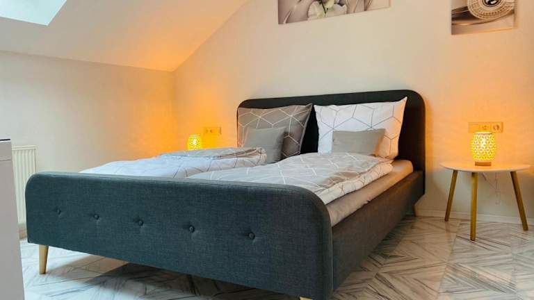Die Wohnung verfügt über ein Schlafzimmer, ein Wohnzimmer, einen Flachbild-TV und eine gut ausgestattete Küche mit Kühlschrank und Geschirrspüler. Das Badezimmer ist mit einer Badewanne ausgestattet. Handtücher und Bettwäsche werden bereitgestellt. Die Unterkunft bietet barrierefreie Parkplätze und Shalldodierte Zimmer. Allergikerfreundliche Zimmer sind verfügbar.