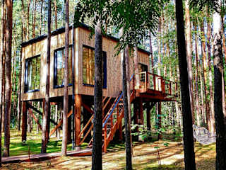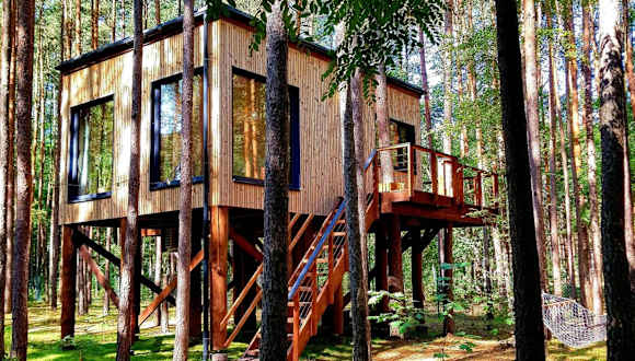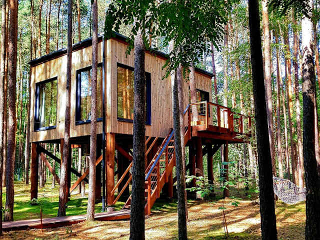 Tree Houses Olszanka bietet kostenloses WLAN und einen privaten Parkplatz. Zur Ausstattung zählen eine Terrasse mit Gartenblick und eine Sauna.