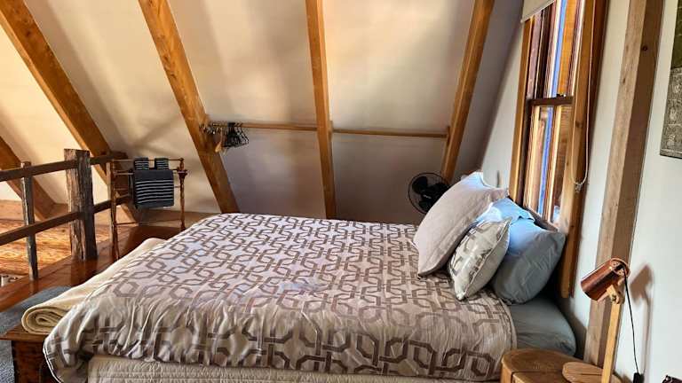 Das Tree Hut Cottage ist ein charmantes Ferienhaus, nur 10 Minuten von Masterton und 33 km von Martinborough entfernt. Es bietet eine gemütliche und entspannte Atmosphäre, einen Grillplatz und eine Terrasse mit herrlichem Bergblick. Die Unterkunft verfügt über einen Carport für Ihr Fahrzeug. Im Inneren finden Sie ein Wohnzimmer mit einem Flachbild-TV, einer Auswahl an DVDs und einem Plattenspieler mit einer Sammlung alter Vinylplatten, die Sie in Ihrer Freizeit genießen können. Ein Holzofen sorgt für zusätzliche Gemütlichkeit. Die Küche ist komplett ausgestattet, um Ihre eigenen Mahlzeiten zuzubereiten. Im Erdgeschoss befindet sich ein Badezimmer und eine separate Toilette. Die Schlafzimmer sind offen gestaltet und bieten ein Kingsize-Bett auf einem Zwischengeschoss, ein Schlafsofa im Erdgeschoss und zwei Feldbetten. Bademäntel, kostenfreie Pflegeprodukte und ein Haartrockner werden für Ihren Komfort bereitgestellt. Der nächstgelegene Flughafen Wellington ist 84 km entfernt.