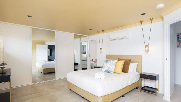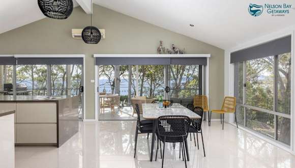 Die Unterkunft befindet sich in Soldiers Point, nur 1,1 km vom Kangaroo Point Reserve und der Soldiers Point Marina entfernt. Die Umgebung bietet Möglichkeiten für verschiedene Wassersportarten und Golf.