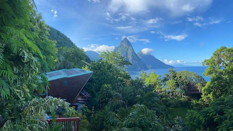 Die Treehouse Hideaway Villa II - Amazing Piton Views befindet sich etwa 1,3 km vom Strand Soufrière Bay entfernt und bietet einen herrlichen Blick auf die umliegenden Berge.