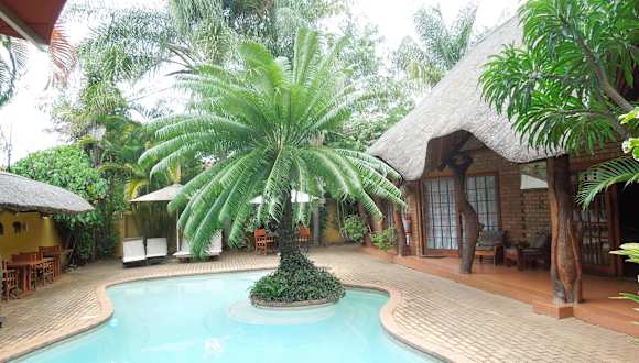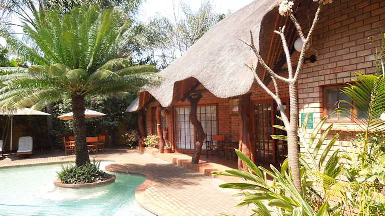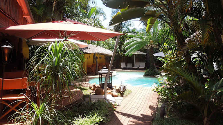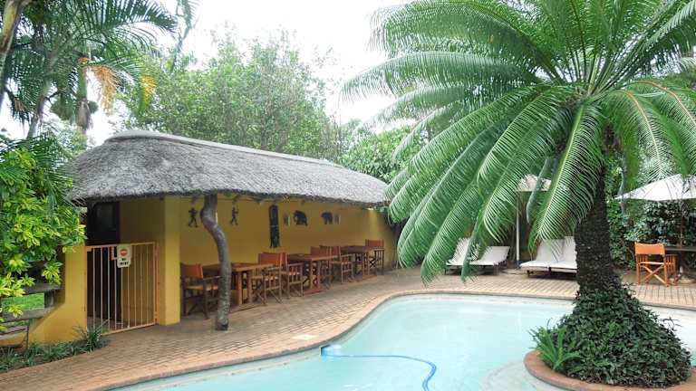 Trees Too is a small, private and intimate owner run guest-house. Its eight bedrooms of varying size and format offer individualistic accommodation in our home. The centrepiece is a swimming pool surrounded by sub-tropical gardens. Dining is available from our small restaurant with most seating outdoors and overlooking the pool. We are situated in the quiet village of Komatipoort, just ten minutes from the Crocodile Bridge gate of the Kruger National Park and Ressano Garcia border with Mozambique. Children are welcome if accompanied by responsible adults. We offer a self-service (honesty) bar for harassed parents and free Wi-Fi for fretful teenagers.