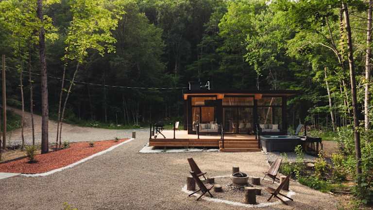 Tremblant Forest Spa Lac Plage Quai Privé ist ein Chalet, das mit einer Terrasse und einem Balkon ausgestattet ist. Die Unterkunft bietet eine Klimaanlage sowie eine Gartenlandschaft und umfasst kostenlose Parkmöglichkeiten für die Gäste. Das Chalet ist eine Nichtraucherunterkunft, die sich für entspannende Aufenthalte eignet.