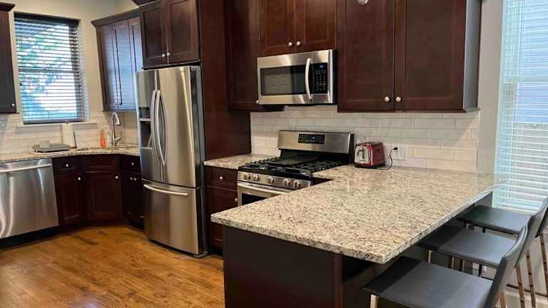 Das Trendy West Town Flat - 2 bed / 1.5 bath w parking bietet eine Selbstversorger-Unterkunft, in der die Gäste ihre eigenen Mahlzeiten zubereiten können. In der voll ausgestatteten Küche können Sie Ihre Lieblingsspeisen zubereiten und in gemütlicher Atmosphäre genießen. Alternativ können Sie auch die nahegelegenen Restaurants und Cafés erkunden, um lokale Spezialitäten zu probieren.