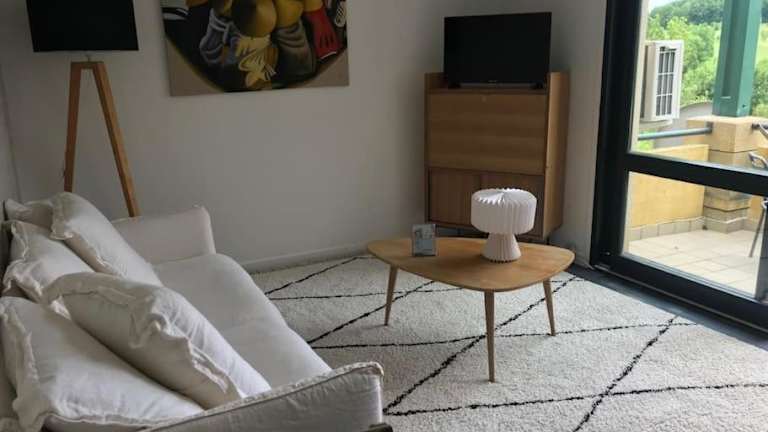 Die Ferienwohnung Très agréable appartement bietet einen Balkon mit Gartenblick, einen saisonalen Außenpool sowie eine Bar. Die Unterkunft wird von einem privaten Gastgeber geführt und ist für Gäste ab 18 Jahren zugänglich. Feierlichkeiten wie Junggesellenabschiede sind nicht gestattet. Die Unterkunft ist teilweise mit Heizung und Klimaanlage ausgestattet und verfügt über schallisolierte Zimmer.