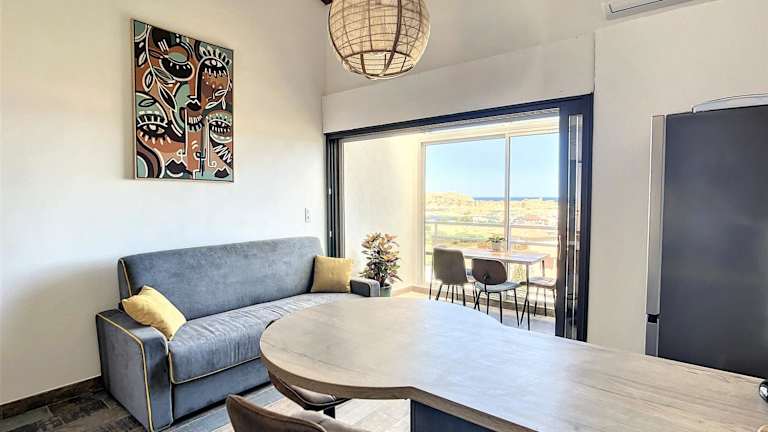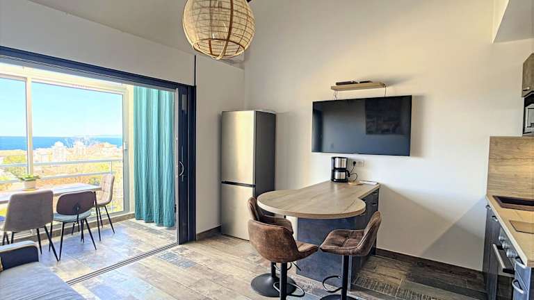 Die Ferienwohnung Très Beau Duplex vue panoramique Mer, Proche Plage verfügt über eine Gemeinschaftslounge sowie eine Terrasse. Zu den Annehmlichkeiten gehören kostenfreier Privatparkplatz, eine Gemeinschaftsküche und kostenloses WLAN. Die Unterkunft bietet eine Klimaanlage und ist ideal für einen angenehmen Aufenthalt an der Küste.