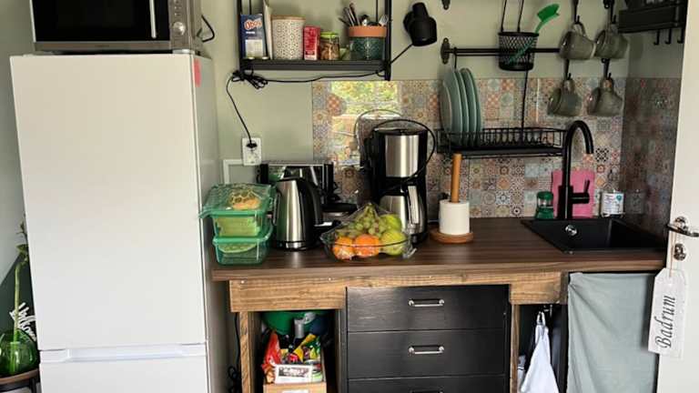Die Verpflegung im Trhastbb umfasst ein Frühstück mit verschiedenen Optionen, darunter à la carte, kontinental sowie englische und irische Gerichte. Zudem gibt es Grillmöglichkeiten. Weiterhin werden Speisen für spezielle Ernährungsbedürfnisse auf Anfrage angeboten. Snacks und Getränke können über Automaten bezogen werden.
