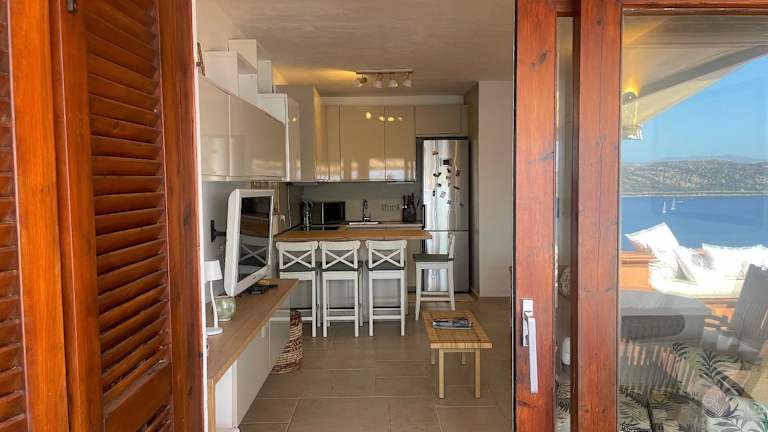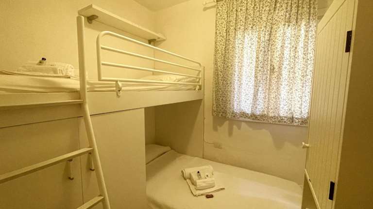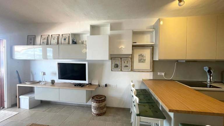Die Ferienwohnung verfügt über zwei Schlafzimmer, ein Wohnzimmer, eine voll ausgestattete Küche mit Kühlschrank und Kaffeemaschine, sowie ein Badezimmer mit Bidet und Dusche. Handtücher und Bettwäsche sind in der Unterkunft vorhanden. Die Wohnung ist klimatisiert und hat saisonalen Zugang zum Außenpool.