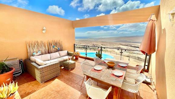Triplex Caleta de Fuste Impresionantes vistas bietet Übernachtungsmöglichkeiten mit atemberaubendem Meerblick. Die Unterkunft zeichnet sich durch eine Terrasse, einen Innenpool und eine gut ausgestattete Küche aus. Es handelt sich um ein Ferienhaus, das von einem privaten Gastgeber geführt wird. Check-in erfolgt in einem Zeitraum von 16:00 bis 22:00 Uhr, während der Check-out zwischen 06:00 und 11:00 Uhr möglich ist.