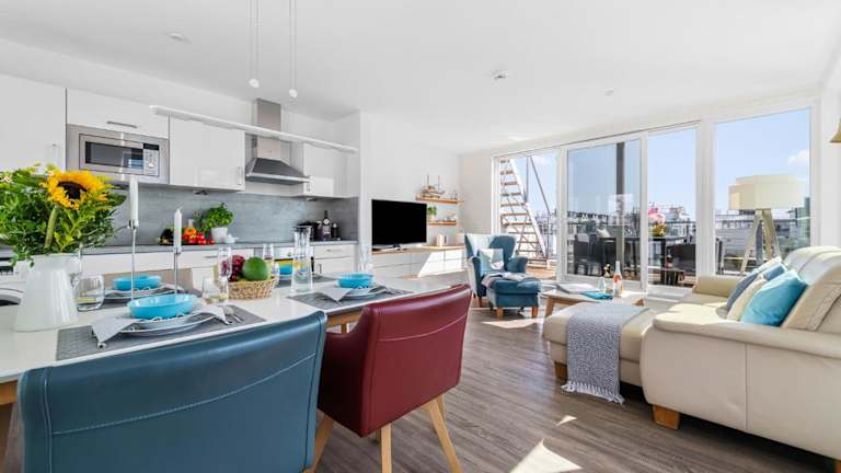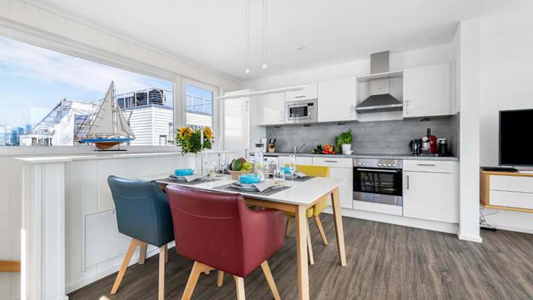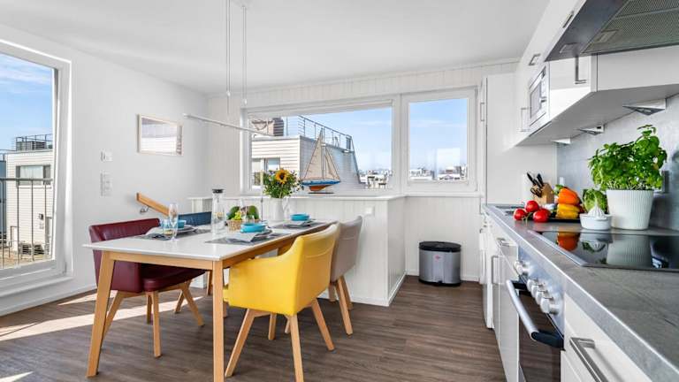 Die Zimmer umfassen zwei Schlafbereiche, eine voll ausgestattete Küche mit Kühlschrank und Geschirrspüler, ein Badezimmer mit Dusche, Haartrockner und Waschmaschine. Zur Unterhaltung stehen ein TV und ein Blu-ray-Player zur Verfügung.