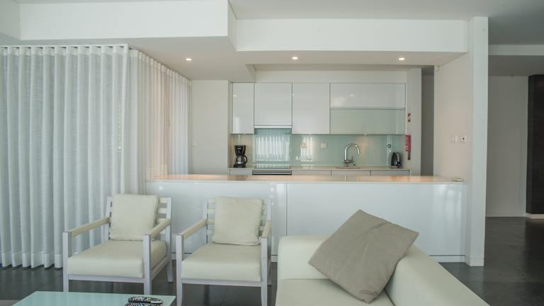 Die klimatisierten Apartments verfügen über ein Schlafzimmer mit Doppelbett, zwei Badezimmer, eine komplett ausgestattete Küchenzeile, einen Essbereich für vier Personen sowie ein Wohnzimmer mit Balkon und Blick auf die Umgebung. Zu den Annehmlichkeiten gehören ein Flachbild-Kabel-TV, WiFi (teilweise kostenlos), eine Waschmaschine und eine Nespresso-Maschine.