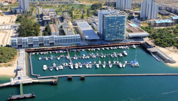 Das Hotel Troia Residence by The Editory - Apartamentos Marina bietet moderne Apartments mit 1 oder 2 Schlafzimmern und Blick auf den Yachthafen und den Fluss Sado. Die Apartments sind gut ausgestattet und verfügen über eine voll ausgestattete Küche, ein Wohnzimmer und ein Badezimmer. Das Hotel bietet auch einen Innenpool und einen Golfplatz in der Nähe. Die Lage ist ideal für einen erholsamen Urlaub am Strand und bietet auch die Möglichkeit, die Umgebung zu erkunden.