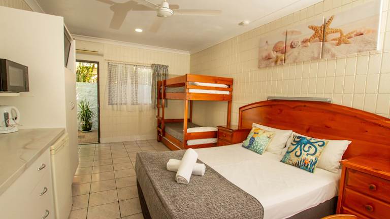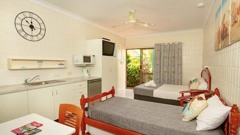 Die klimatisierten Zimmer im Tropical Palms Resort & 4WD Hire sind gut ausgestattet und bieten alles, was Sie für einen komfortablen Aufenthalt benötigen. Jedes Zimmer verfügt über eine Küchenzeile mit Herd, Mikrowelle, Kühlschrank und Kochutensilien. Ein eigener Balkon oder Innenhof bietet zusätzlichen Platz zum Entspannen. Im Zimmer gibt es auch einen gemütlichen Sitzbereich mit Flachbild-TV und DVD-Player.
