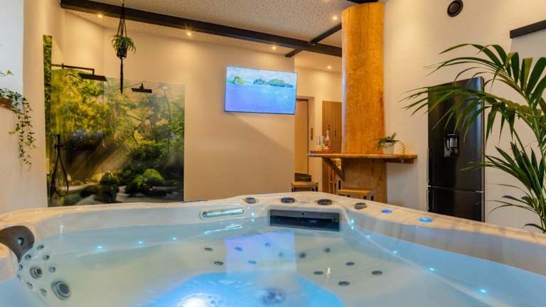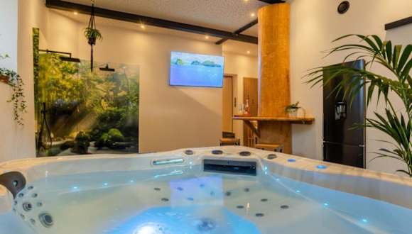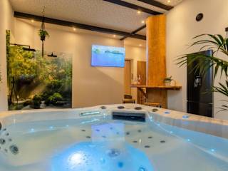 Die Tropical Wellness Suite I Sauna I Whirlpool I Hot Tub I TV I BBQ bietet Übernachtungsmöglichkeiten in einem Garten mit kostenlosem WLAN und einer rund um die Uhr besetzten Rezeption. Die Unterkunft beinhaltet einen Wellnessbereich mit Sauna und Whirlpool.