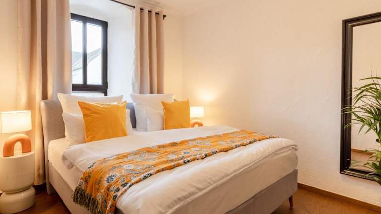 Die Ferienwohnung verfügt über 2 Schlafzimmer, ein Wohnzimmer sowie eine voll ausgestattete Küche mit Kühlschrank und Kaffeemaschine. Ein Badezimmer mit Bidet und Dusche ist ebenfalls vorhanden. Handtücher und Bettwäsche werden bereitgestellt.