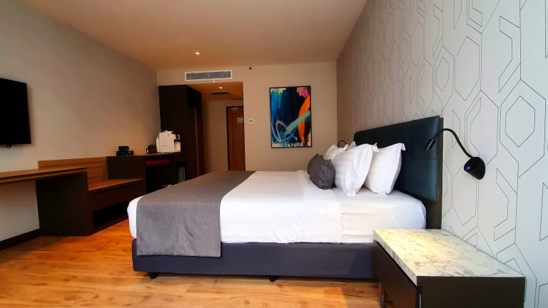 Die Zimmer sind mit modernen Annehmlichkeiten wie einem Flachbild-TV, einer Klimaanlage, einem Safe und einer Minibar ausgestattet. Zu der Standardausstattung gehören außerdem eine Kaffeemaschine, ein Bügelset und ein eigenes Bad mit Dusche und kostenlosen Pflegeprodukten. Rollstuhlgerechte Zimmer sind ebenfalls verfügbar.