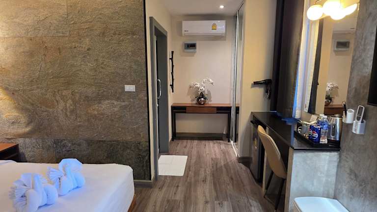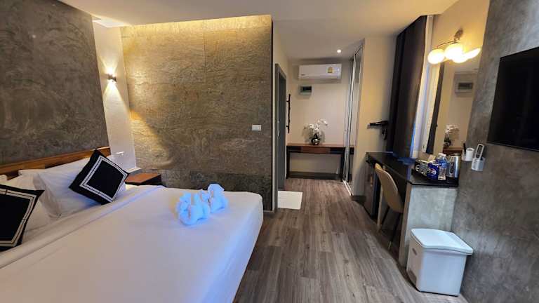 Die Zimmer im TT Naiyang Beach Phuket sind gemütlich und klimatisiert, um Ihnen einen angenehmen Aufenthalt zu ermöglichen. Sie bieten ein modernes thailändisches Interieur und eine warme Beleuchtung, die für eine entspannte Atmosphäre sorgt. Die Zimmer sind gut ausgestattet mit einem Flachbild-TV, einer Minibar und einem persönlichen Safe. Jedes Zimmer verfügt über ein eigenes Badezimmer mit Dusche und kostenlose Pflegeprodukte stehen ebenfalls zur Verfügung.