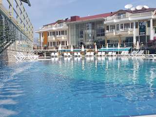 Wir sind ein 4 Sterne Hotel mit dem Konzept All Inklusive und Halb Pension. Unser All Inklusive ist zwischen 10:00-23:00 Uhr. Die Hotelanlage liegt auf 7063 m2 Grundfläche und hat 4 Blöcke mit insgesamt 224 Zimmern. Die von unserem Chefkoch und seiner Belegschaft bereitete vielfältige, original Türkische- und Internationale Küche auszuprobieren. Im All Inklusive bieten wir Frühstück.-Mittagsessen.- und Abendessen im Offenes Buffet im Restaurant, Snacks, Kaffe / Kuchen und Pancake .