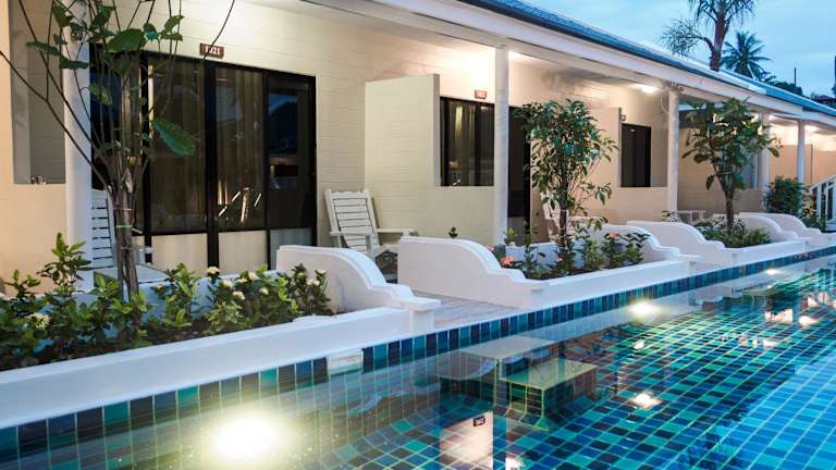 Das Tuana Hotels Brook Pool Access bietet eine ansprechende Kombination aus traditionellen und modernen thailändischen Möbeln. Die Anlage umfasst einen großen Lagunen-Pool und WLAN-Zugang ohne zusätzliche Kosten. Es wird eine 24-Stunden-Rezeption angeboten, ebenso wie verschiedene Annehmlichkeiten wie ein Garten, eine Terrasse und ein Flughafenshuttle.