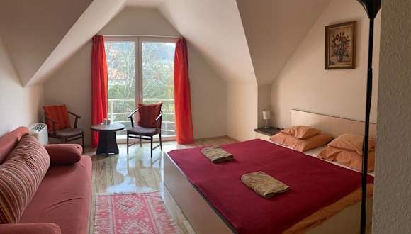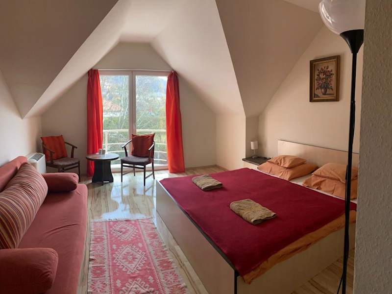 Das Tündérszikla Panzió in Pilisjászfalu ist eine charmante Unterkunft mit wunderschönem Bergblick und einer Vielzahl von Annehmlichkeiten. Hier können Sie sich entspannen und die Natur genießen, während Sie gleichzeitig den Komfort moderner Annehmlichkeiten wie kostenlosem WLAN und kostenfreien Privatparkplätzen nutzen. Die klimatisierten Zimmer sind stilvoll eingerichtet und verfügen über eine Terrasse und einen Flachbild-TV. Einige Zimmer bieten auch einen Balkon und einen separaten Sitzbereich. Der Kinderspielplatz und der japanische Garten in der Nähe bieten zusätzliche Unterhaltungsmöglichkeiten.