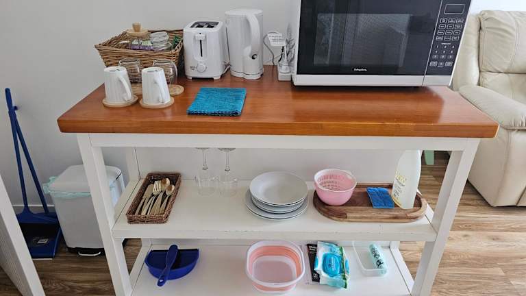 Die Ferienwohnung verfügt über Klimaanlage, ein Badezimmer mit Dusche und kostenlosen Pflegeprodukten. Zur Ausstattung gehören außerdem Handtücher und Bettwäsche. Die Küchenzeile ist mit einem Kühlschrank und einem Wasserkocher ausgestattet.
