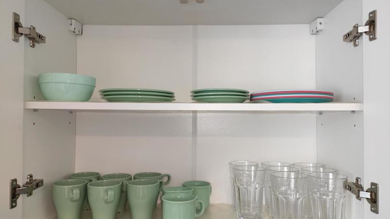 Die Unterkunft ist mit einer Küchenzeile ausgestattet, die einen Kühlschrank, eine Mikrowelle sowie eine Herdplatte beinhaltet.