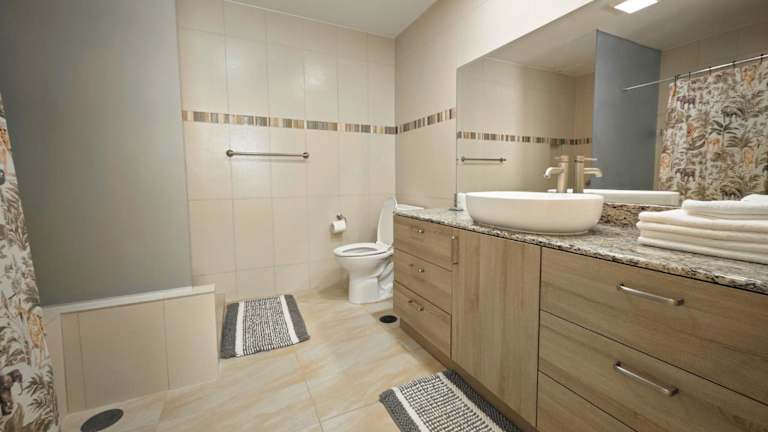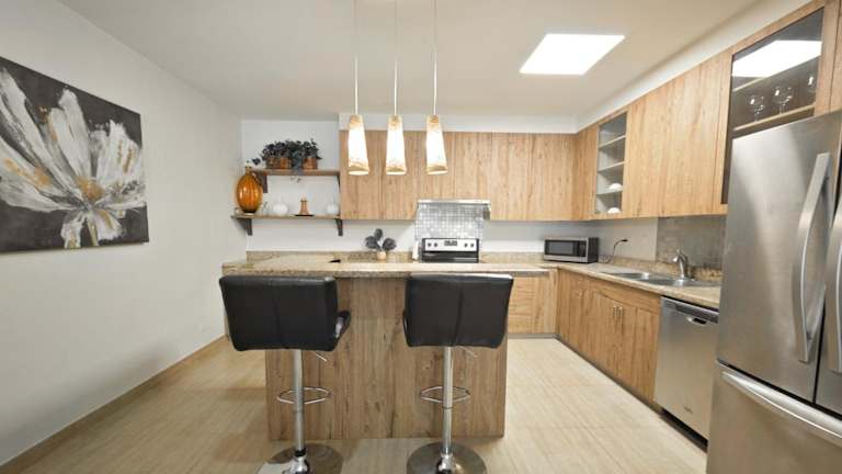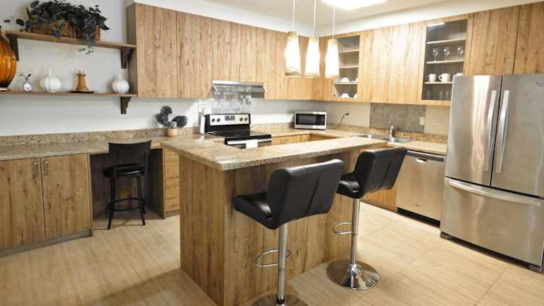 Die Wohneinheiten sind mit einer Küche ausgestattet, die über einen Kühlschrank, einen Geschirrspüler, einen Ofen, eine Mikrowelle, eine Herdplatte, einen Toaster und einen Wasserkocher verfügt.