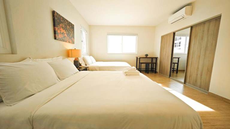 Die Ferienwohnung verfügt über klimatisierte Schlafzimmer sowie eine vollständig ausgestattete Küche.