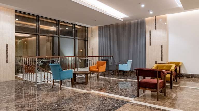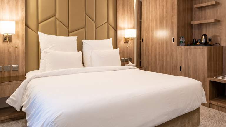 Das Hotel verfügt über insgesamt 99 klimatisierte Zimmer, die mit modernen Annehmlichkeiten ausgestattet sind. Jedes Zimmer verfügt über einen LED-Fernseher und einen Kamin, um Ihnen ein gemütliches Ambiente zu bieten. WLAN und Satellitenempfang sind ebenfalls vorhanden. Auf Anfrage werden die Zimmer täglich gereinigt und bieten separate Sitzecken sowie Kaffee- und Teezubehör.