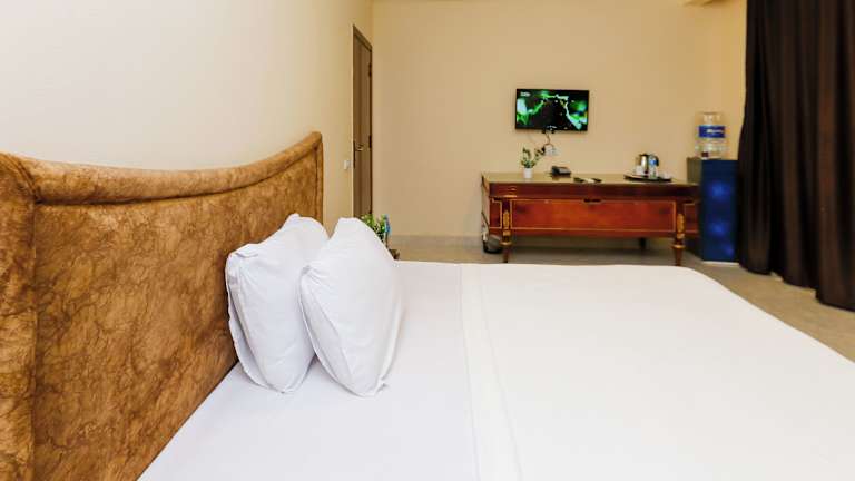 Das Frühstück wird entweder à la carte oder in Form eines kontinentalen Frühstücks angeboten. Des Weiteren serviert das hoteleigene Restaurant sowohl amerikanische als auch nahöstliche Küche. Auf Anfrage stehen vegetarische, milchfreie und halal-zubereitete Optionen zur Verfügung.